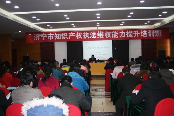 3月8日,济宁市知识产权执法维权能力提升培训班在济宁太白酒楼成功举办。此次培训班由市知识产权局副局长仲崇斌主持。市法院、市检察院、市公安局、市版权局、市工商局分管负责同志,各县市区知识产权局局长、副局长、执法人员,市知识产权局全体人员,全市知识产权优势企业负责人共计150余人参加了培训。