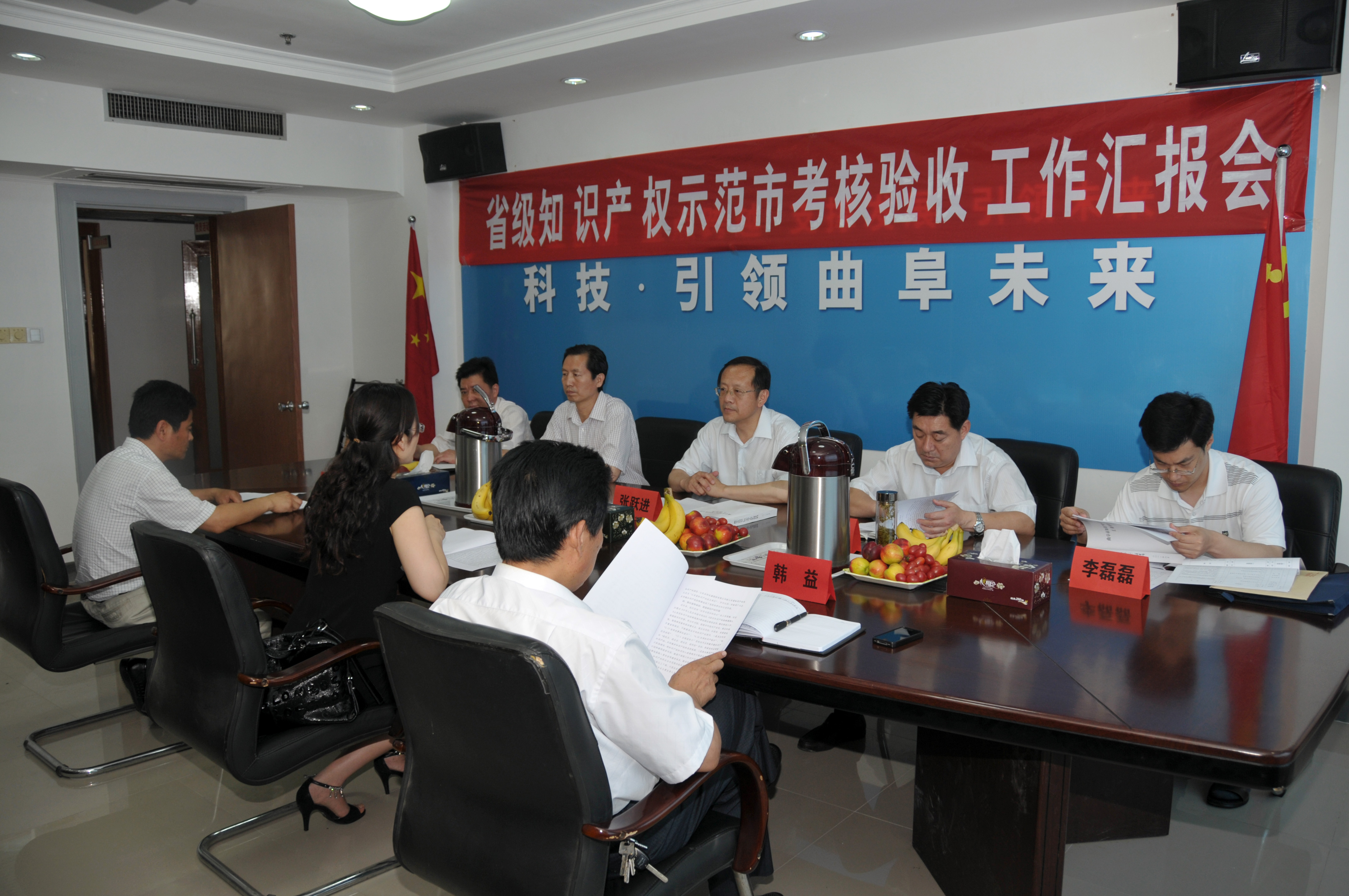 6月14日,山东省知识产权局副局长张跃进、协调管理处处长吕宝礼,bt365.com局长李亦军等,组成知识产权示范验收组对曲阜市知识产权示范工作进行验收。曲阜市政府副市长褚福梅,济宁科技创新服务中心主任、曲阜市科技局局长韩益等陪同验收。